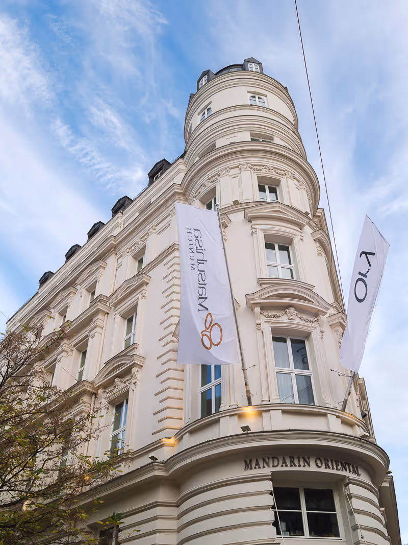 The Mandarin Oriental Munich is where timeless sophistication meets contemporary refinement. Its rooftop terrace offers one of the most striking panoramic views in the city — a perfect setting for sunset ceremonies or champagne portraits against the skyline.