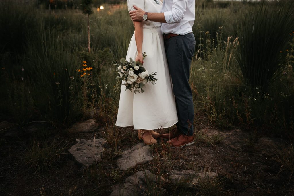 After their evening ceremony, we whisked Adam and Elizabeth out to the exterior grounds of the Niagara Botanical Gardens for a quick wedding couple’s portrait session. As the light faded we wandered through the beautiful pathways lined with interesting plants and flowers. The park was closed to visitors so again we had the space completely to ourselves and took the opportunity to set up some beautiful creative portraits.