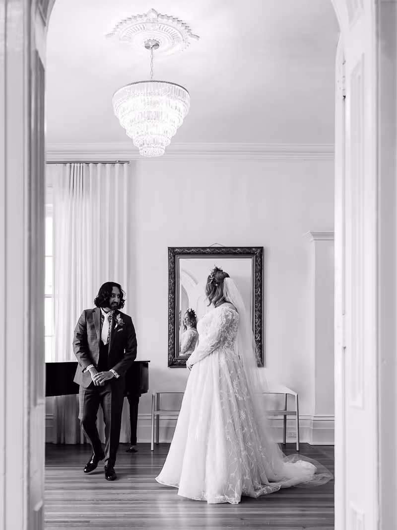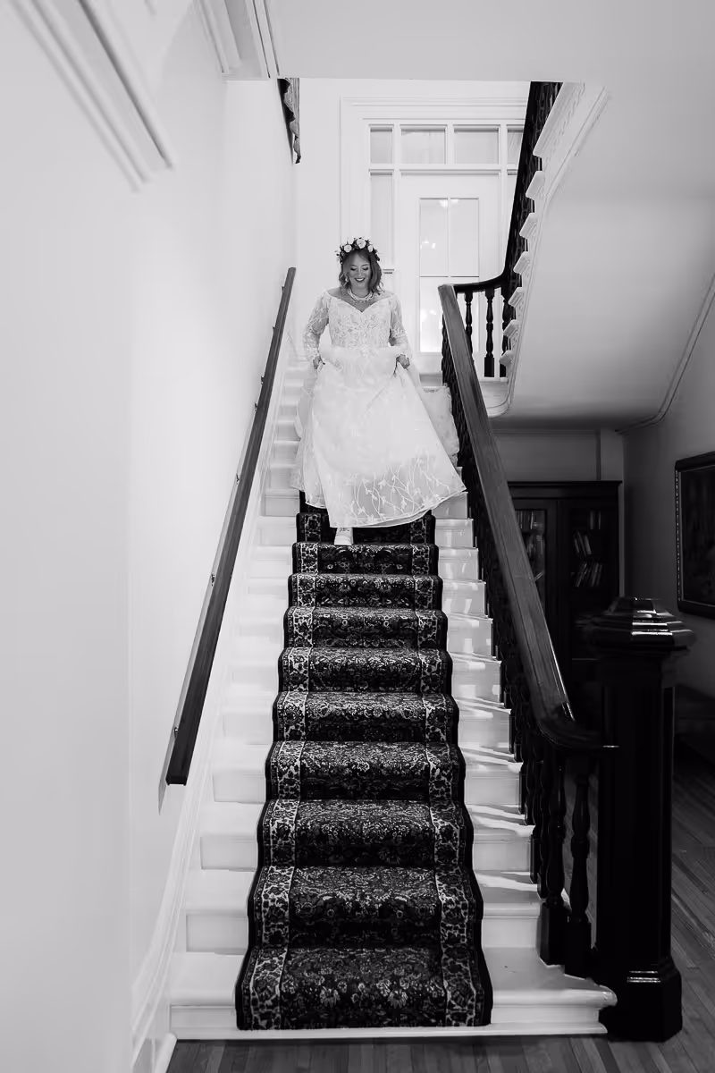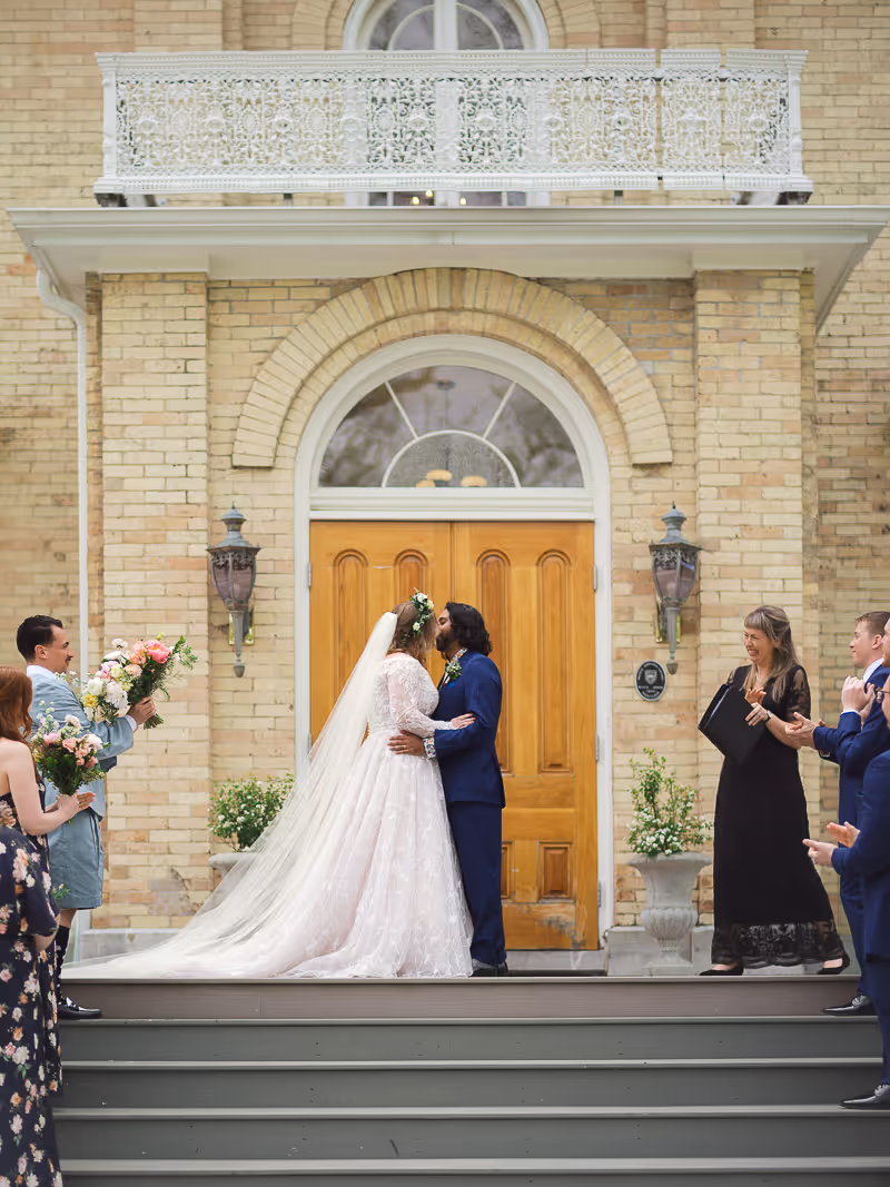 Pro tip for photographers: Schedule your first look and family portraits before the ceremony so you can fully enjoy cocktail hour. The front staircase is a classic backdrop, and the light is divine right before sunset.
