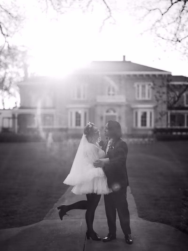The outdoor ceremony space is breathtaking — the kind of setting that makes guests audibly gasp. And when the sun dips behind the mansion, golden hour on the lawn feels straight out of Tuscany.